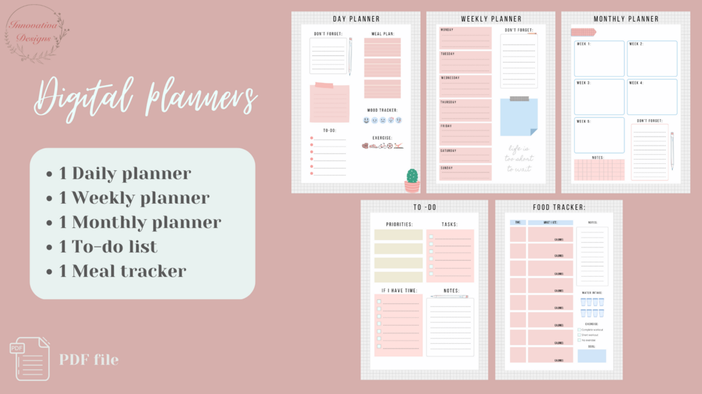 Notebook style digital printable pdf planner template